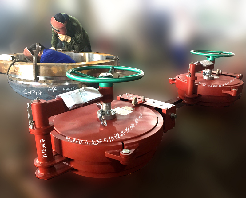快開盲板是用于壓力管道或壓力容器的圓形開口上的一種機(jī)械裝置。一般由筒體法蘭、頭蓋、勾圈或卡箍、密封圈、安全聯(lián)鎖機(jī)構(gòu)、開閉機(jī)構(gòu)、轉(zhuǎn)臂及短節(jié)(需要時(shí))等部件構(gòu)成。