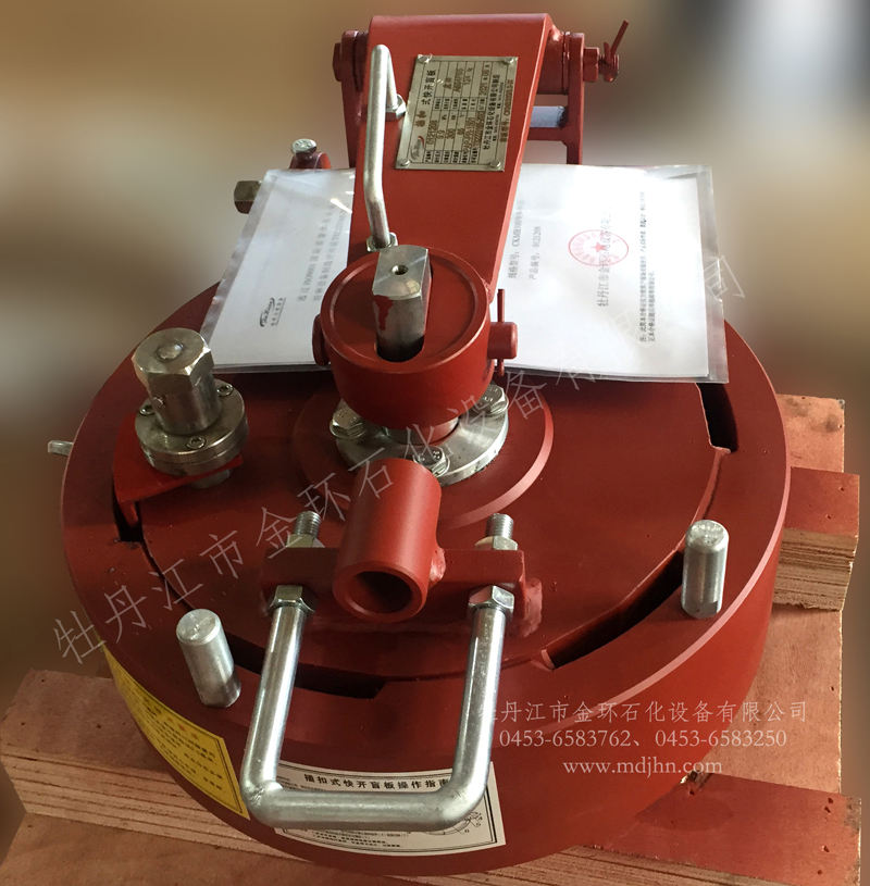 快開盲板是用于壓力管道或壓力容器的圓形開口上的一種機(jī)械裝置。一般由筒體法蘭、頭蓋、勾圈或卡箍、密封圈、安全聯(lián)鎖機(jī)構(gòu)、開閉機(jī)構(gòu)、轉(zhuǎn)臂及短節(jié)(需要時(shí))等部件構(gòu)成。