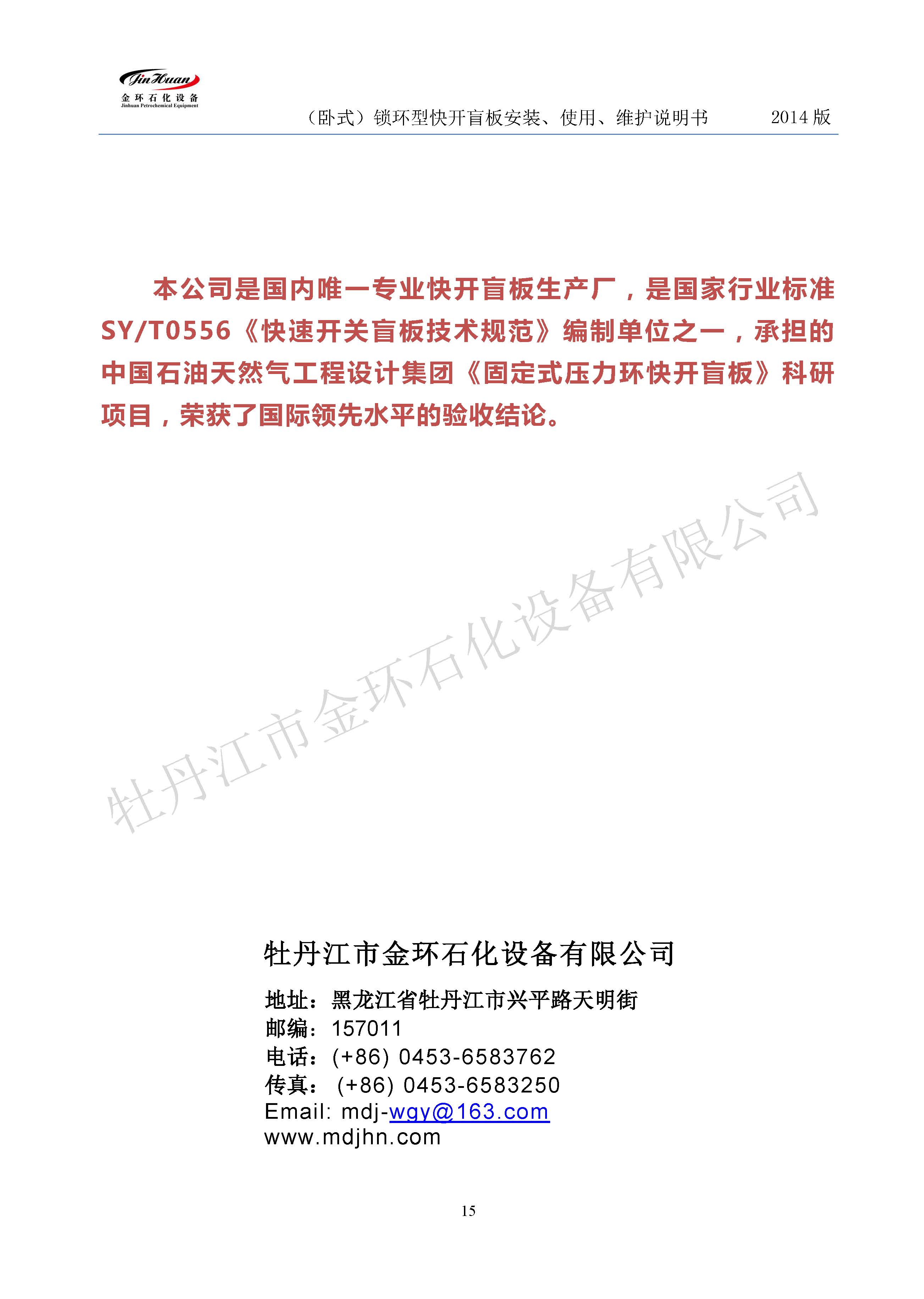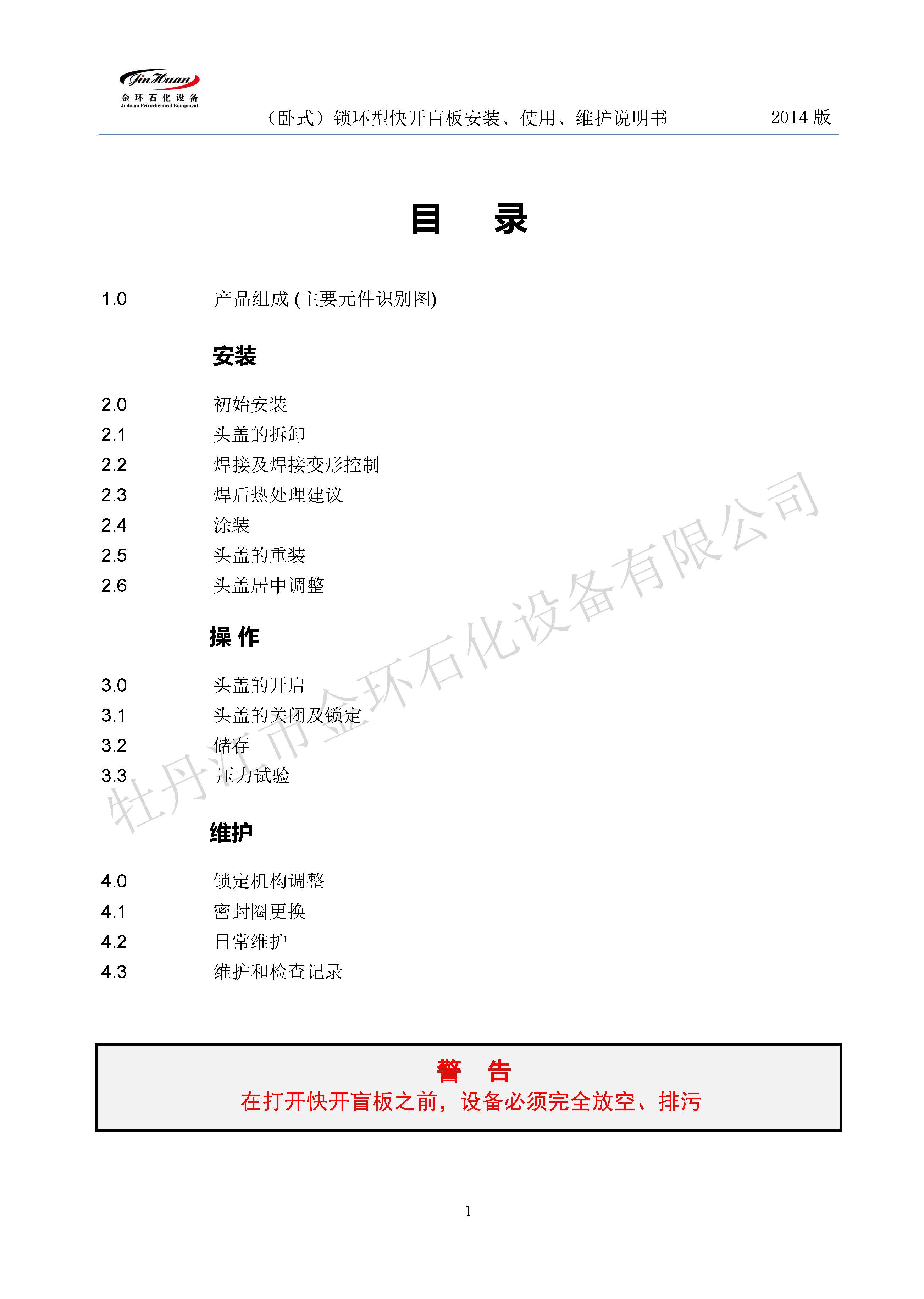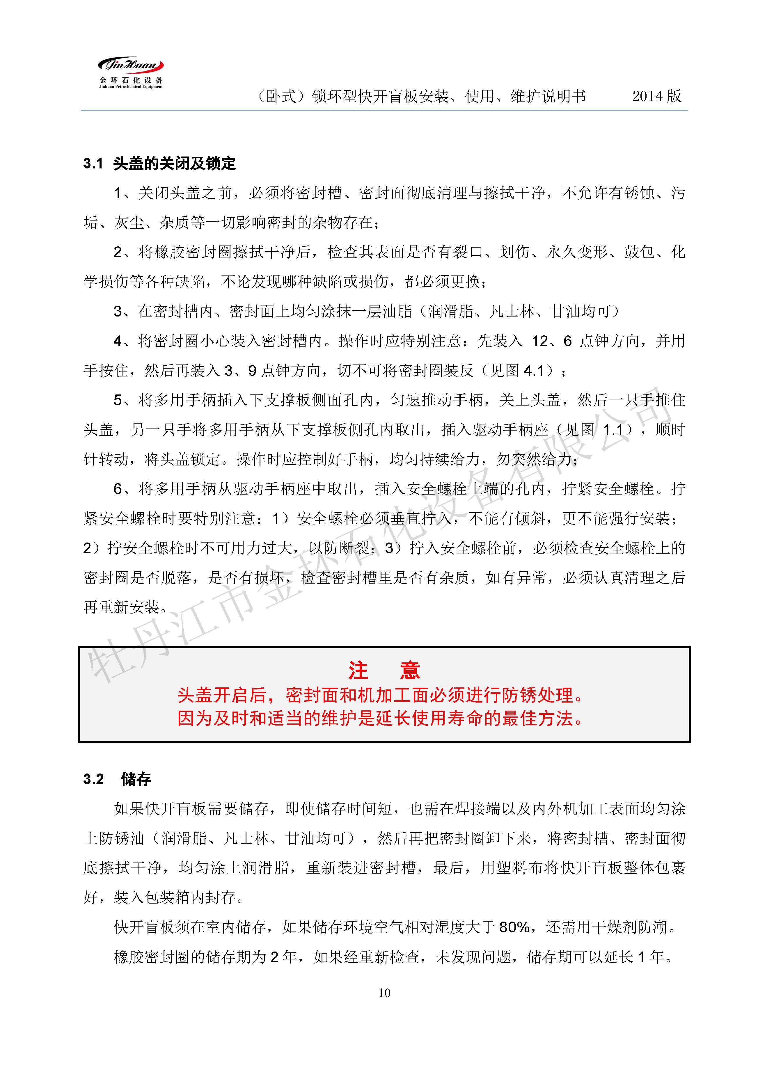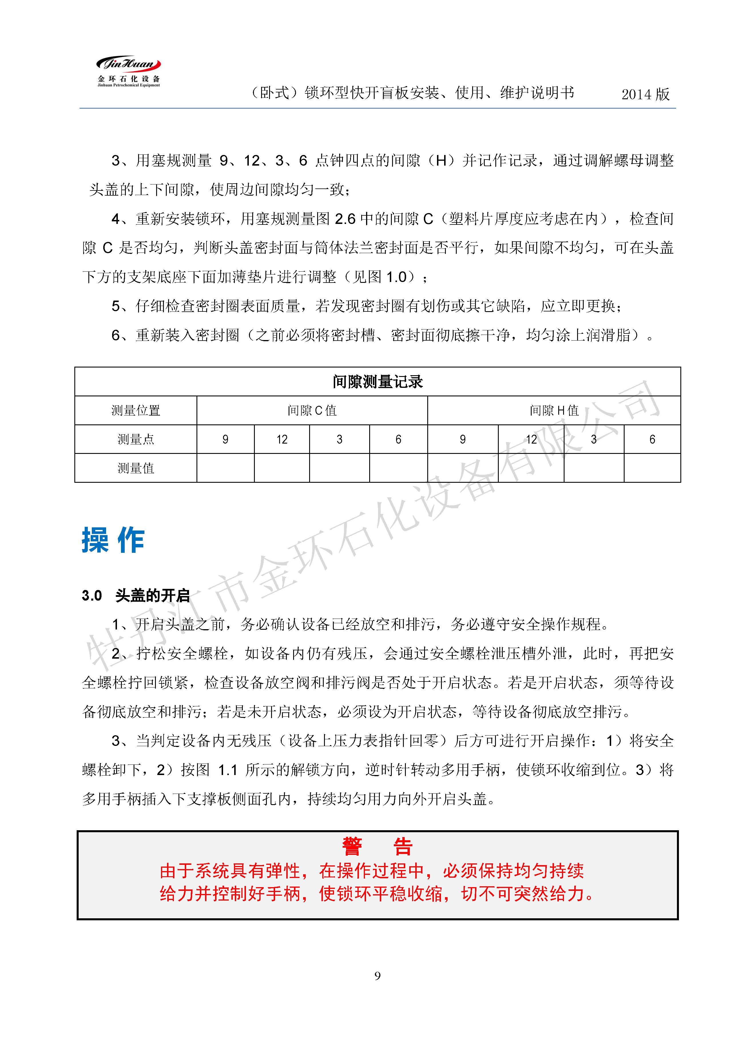 鎖環(huán)臥式快開盲板說明書