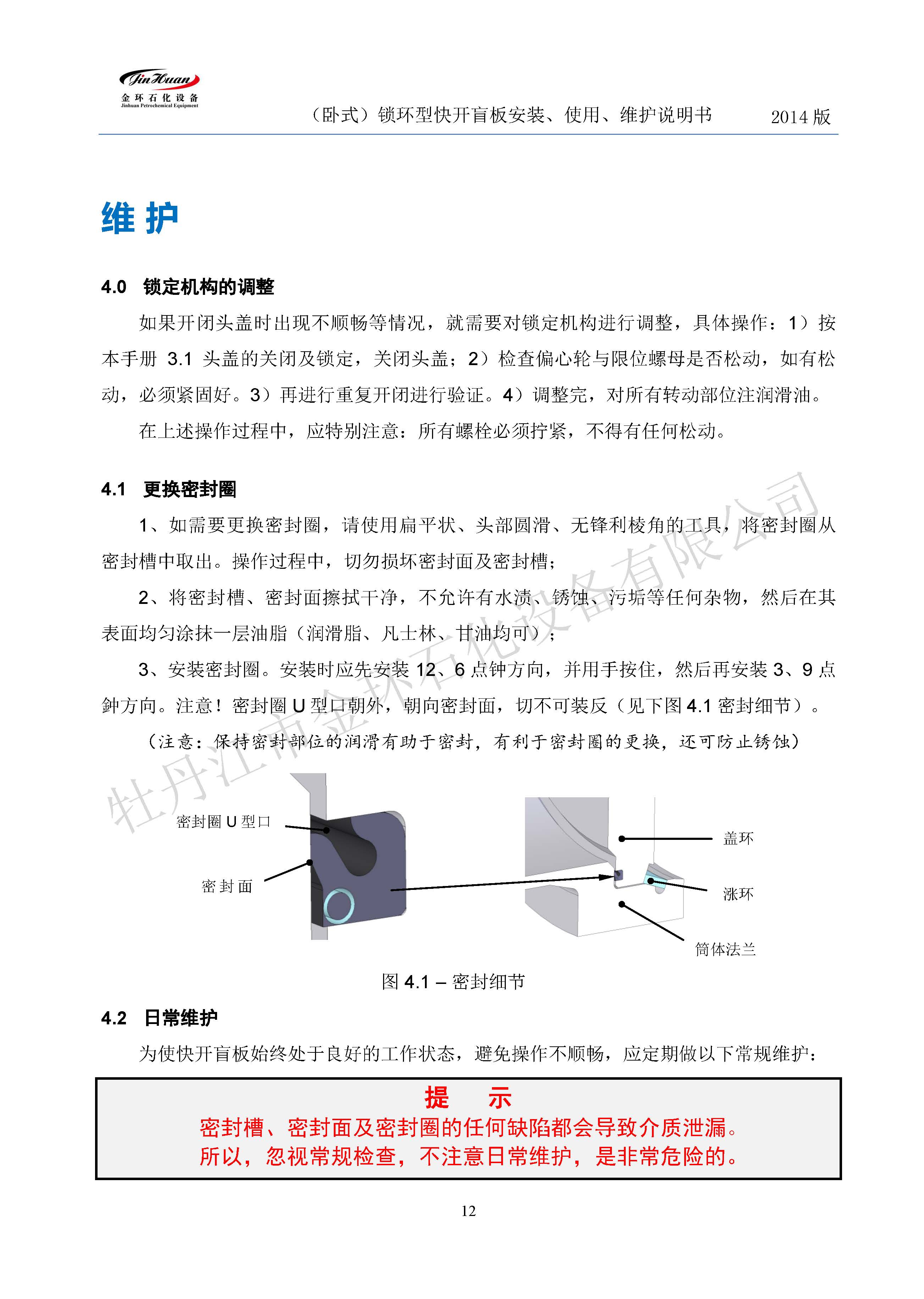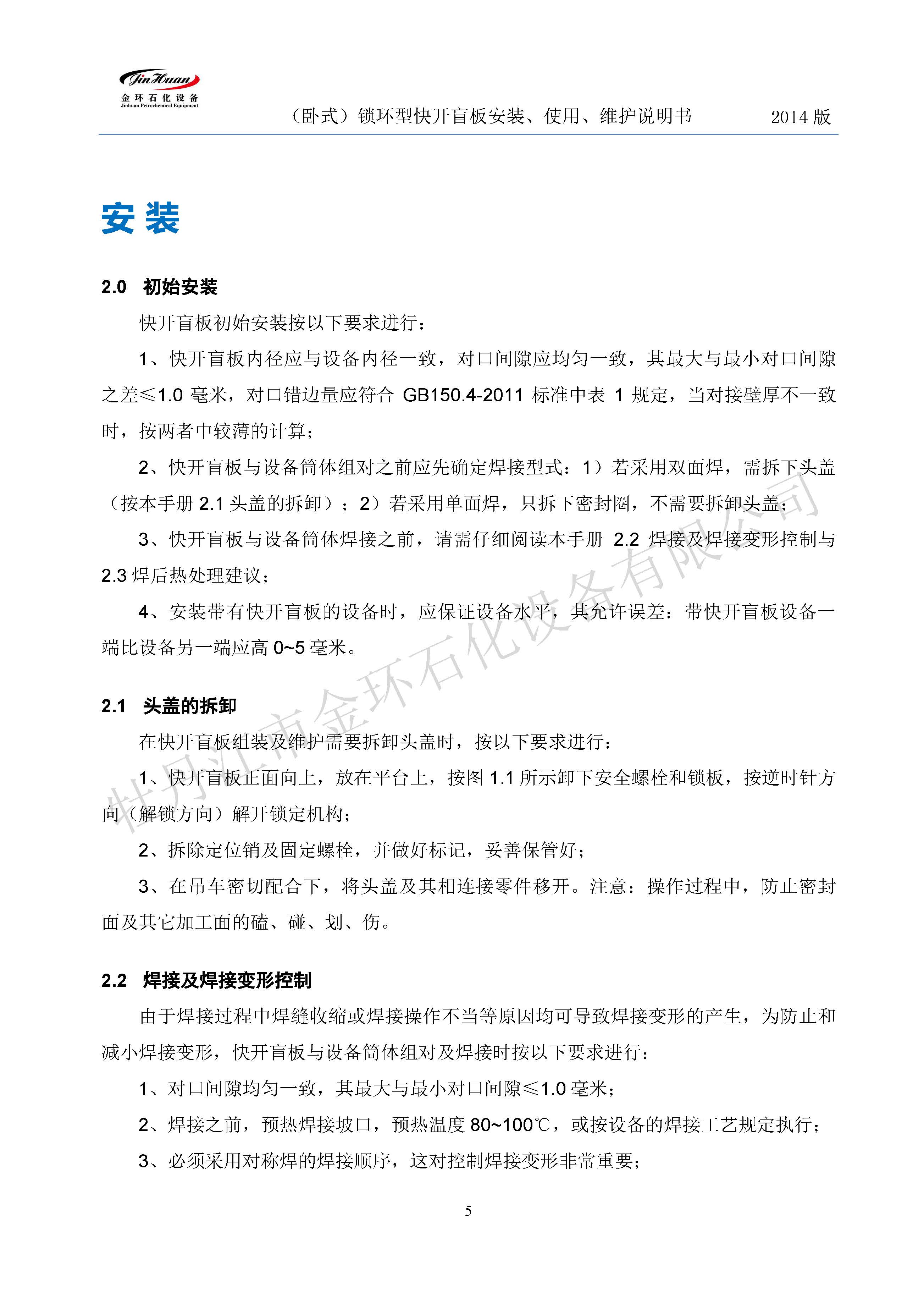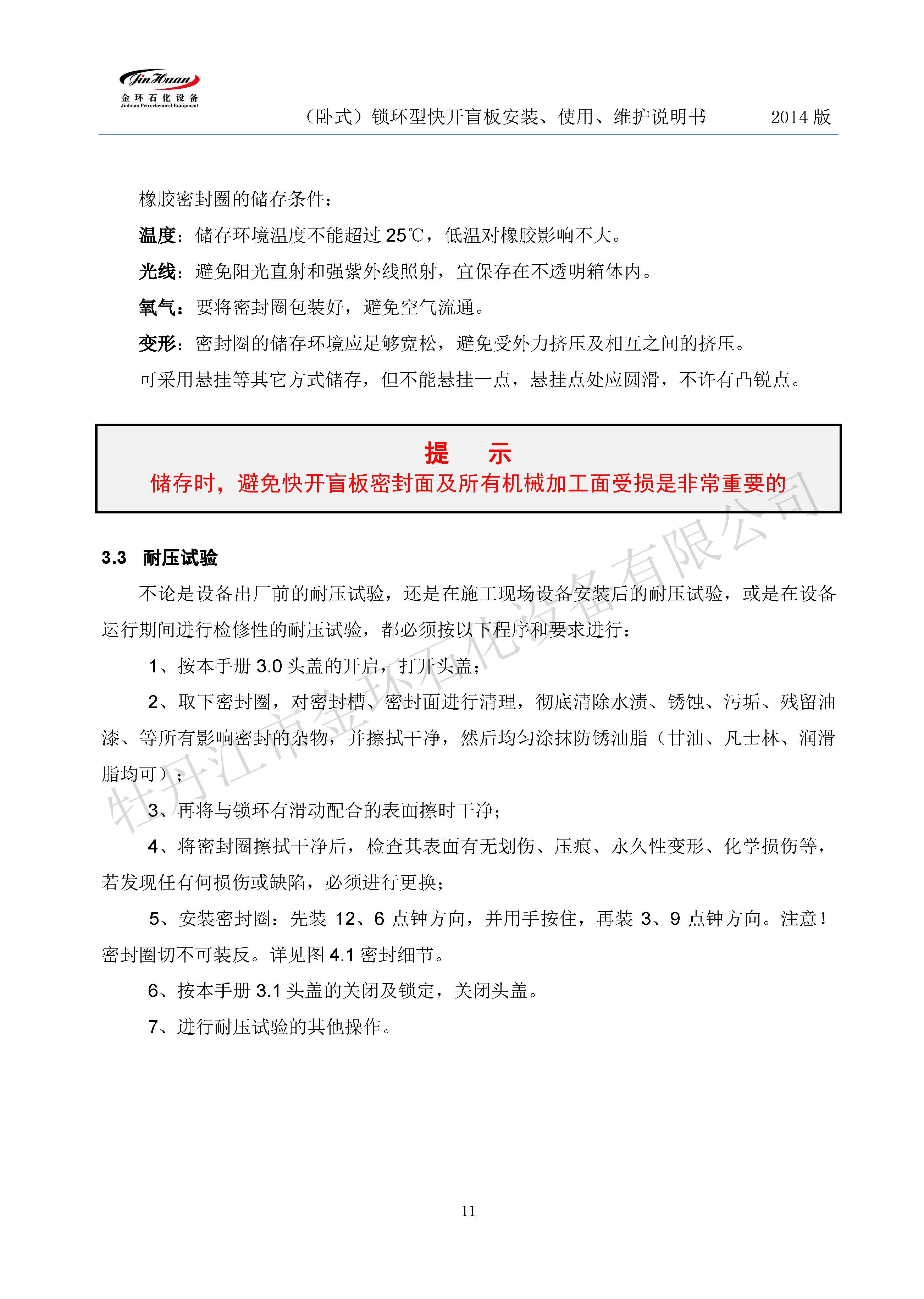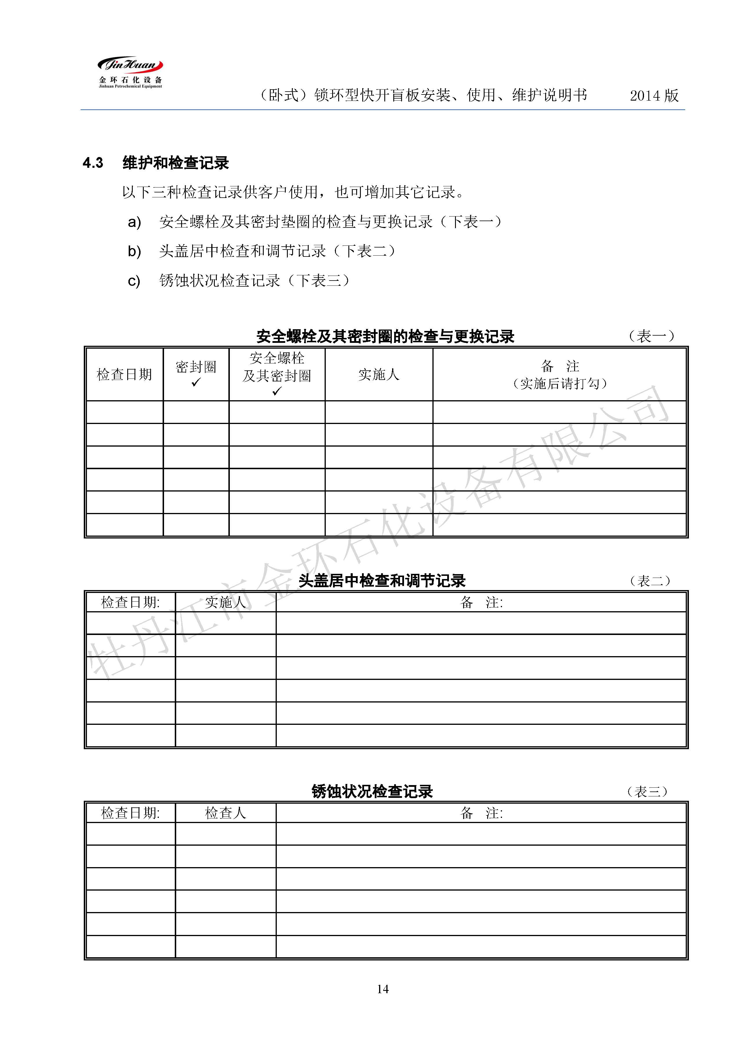 鎖環(huán)臥式快開盲板說明書