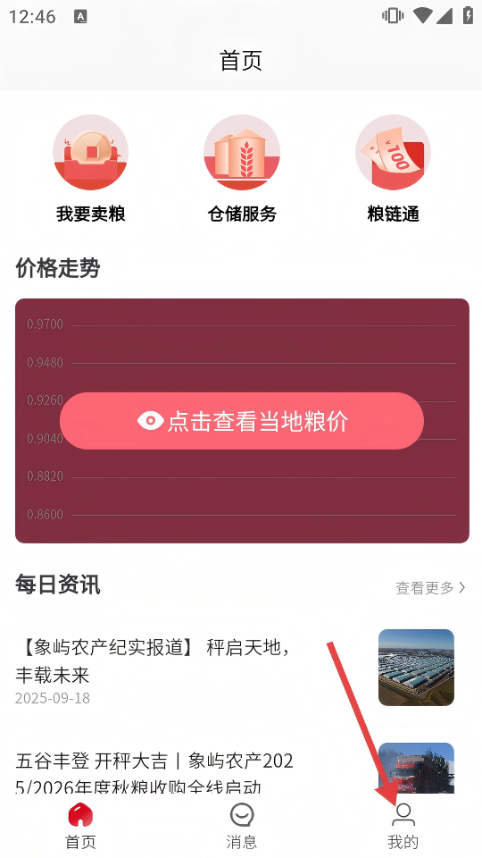 1、打開“興興象農(nóng)”APP首頁,點(diǎn)擊底部【我的】進(jìn)入個(gè)人頁面。