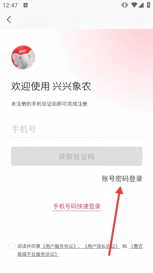 3、在登錄注冊(cè)界面選擇【賬號(hào)密碼登錄】,切換至賬號(hào)密碼登錄頁。