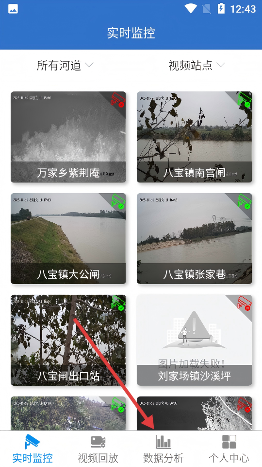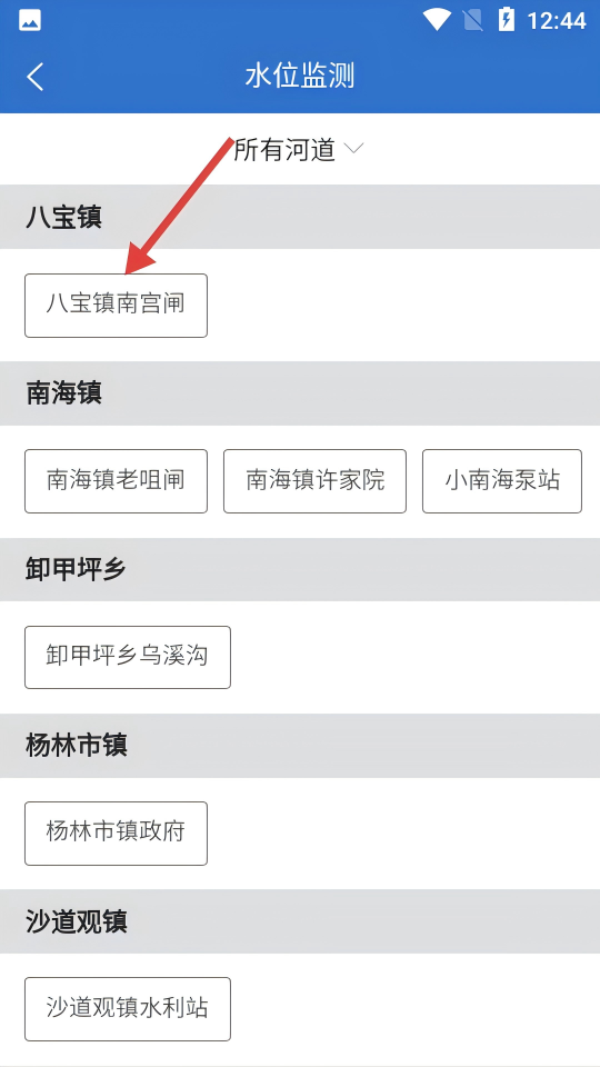 3、在地點(diǎn)列表頁,點(diǎn)擊目標(biāo)監(jiān)測(cè)點(diǎn),進(jìn)入該點(diǎn)水位監(jiān)測(cè)頁。