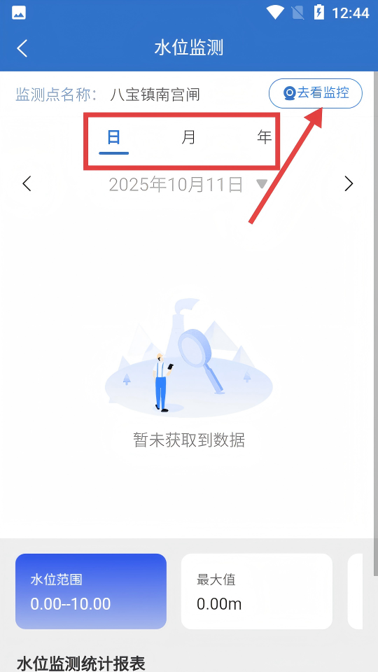 4、在監(jiān)測(cè)頁可按“日-月-年”切換時(shí)間維度,也能點(diǎn)擊【去看監(jiān)控】查看實(shí)時(shí)畫面。
