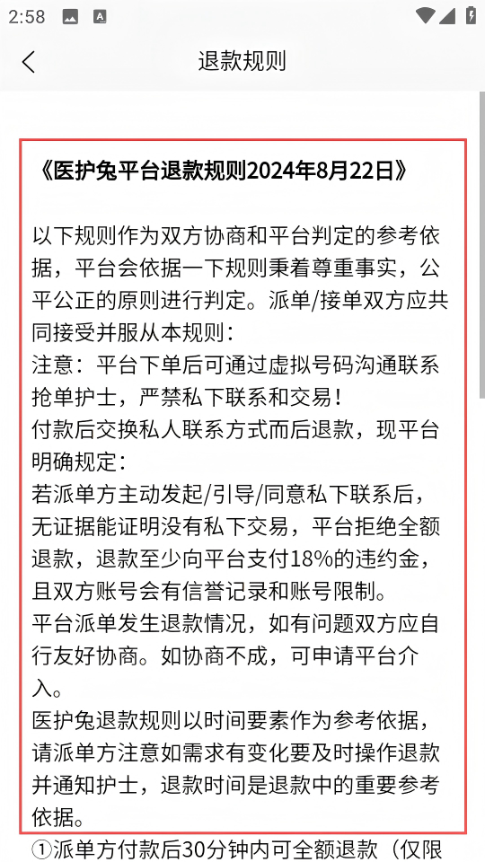 4、進(jìn)入【退款規(guī)則】頁(yè)面,查看文章的詳細(xì)內(nèi)容。