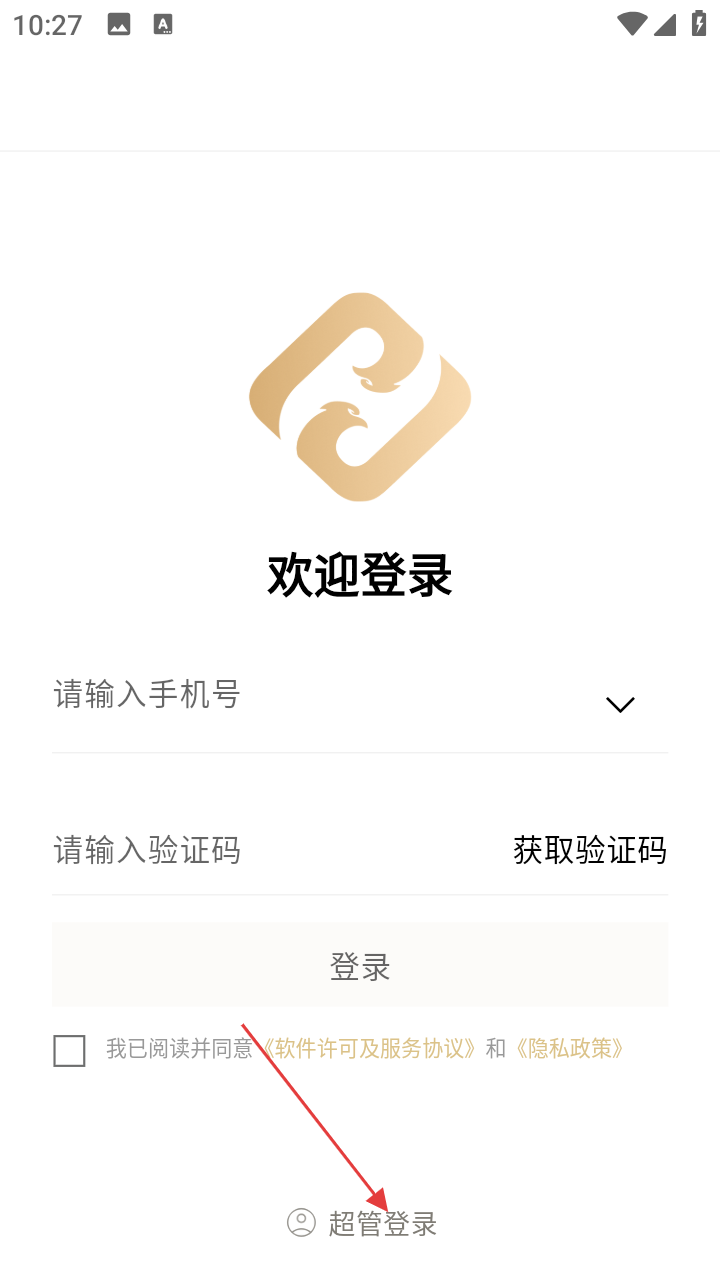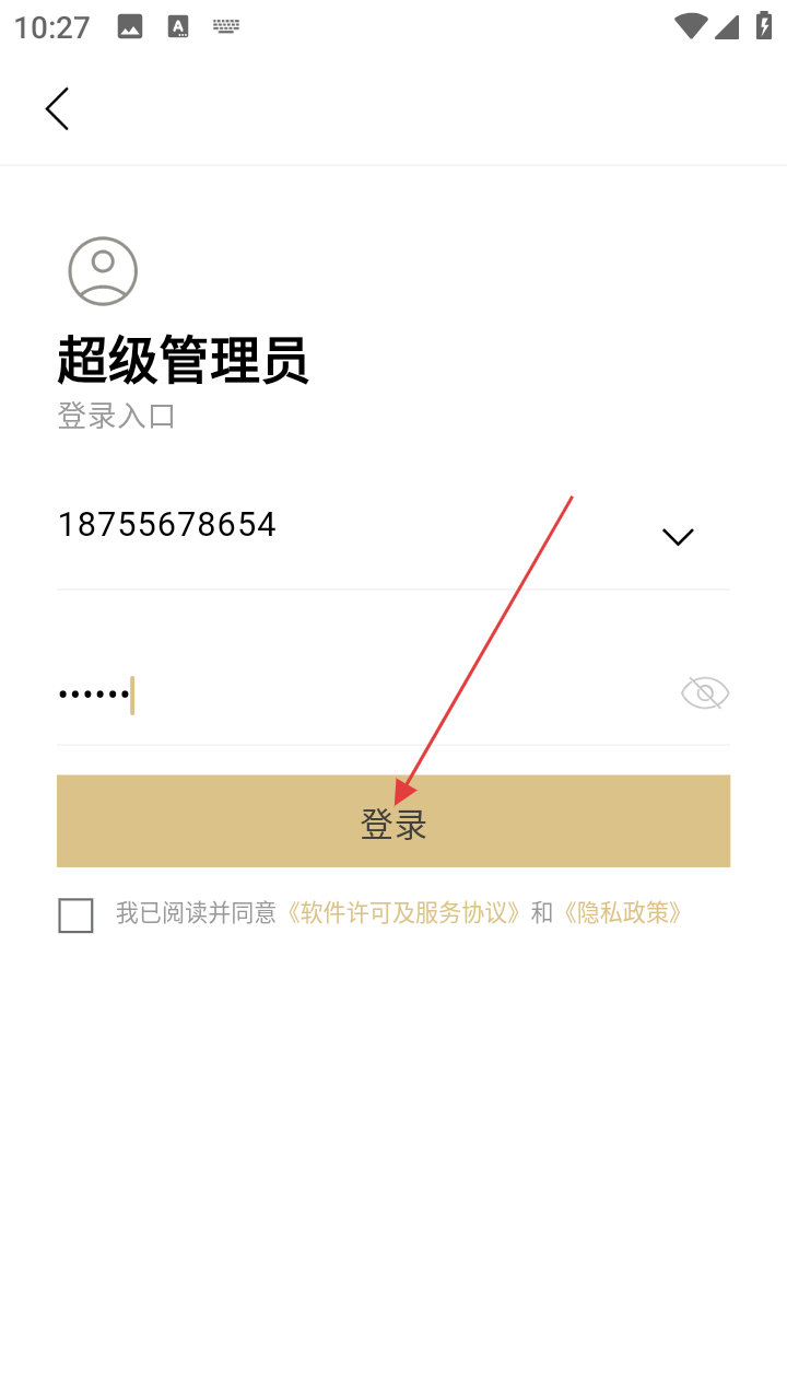4、在對(duì)應(yīng)輸入框中填入手機(jī)號(hào)和密碼后,點(diǎn)擊【登錄】按鈕,即可完成超級(jí)管理員登錄操作。
