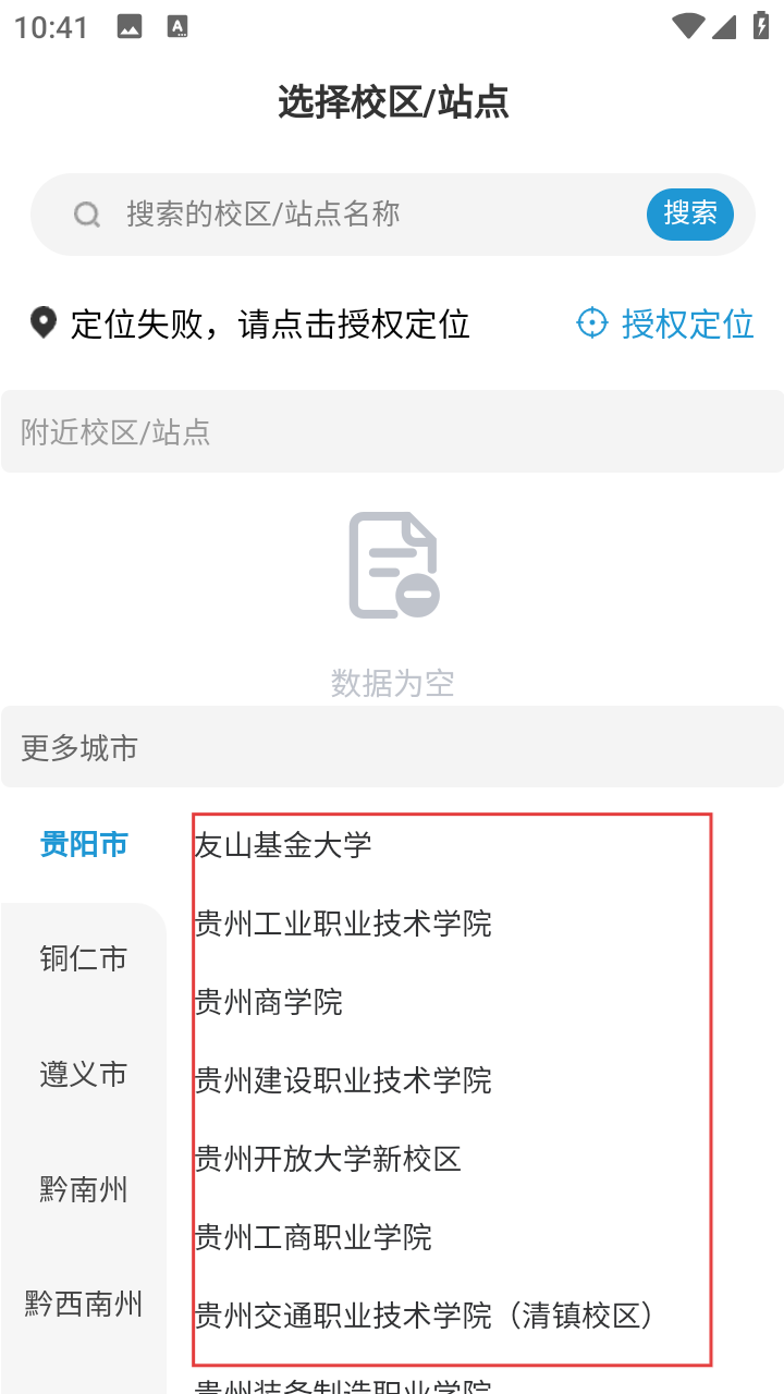 1、進(jìn)入云袋鼠后,可在【選擇校區(qū)/站點】頁面,通過搜索或選擇城市來確定所在校區(qū)/站點,方便后續(xù)使用服務(wù)。