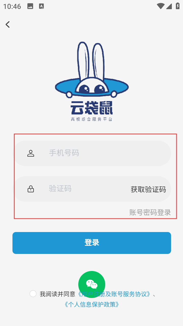 4、進(jìn)入登錄界面,在【手機(jī)號碼】和【驗證碼】輸入框填寫信息,勾選同意相關(guān)協(xié)議后,點擊【登錄】按鈕,完成登錄操作。