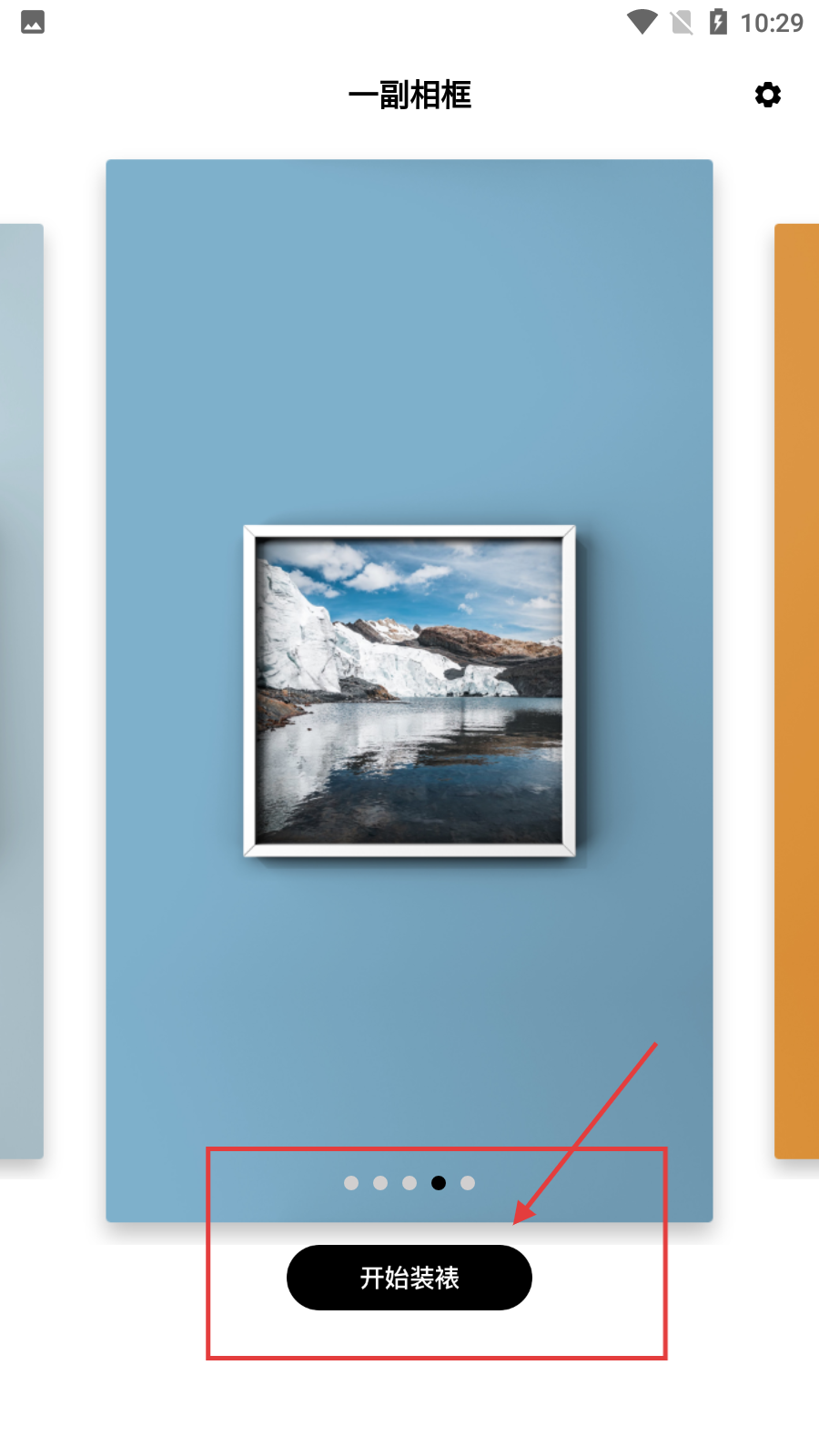 1、進入【一副相框】界面后,選擇自己喜歡的相框,點擊底部【開始裝裱】按鈕,即可進入圖片選擇環(huán)節(jié)。