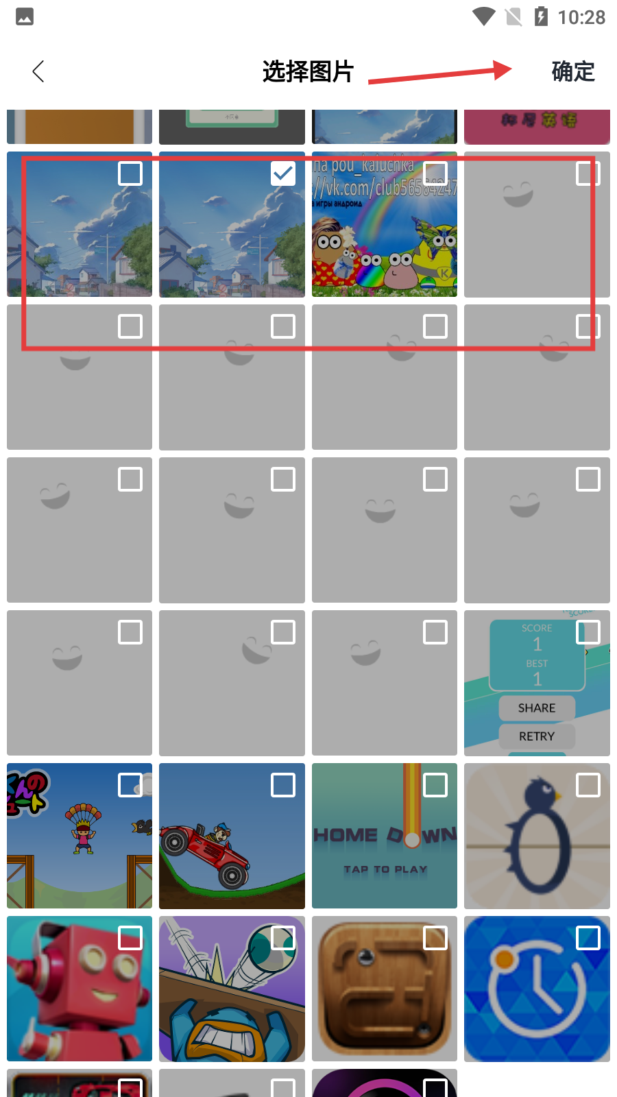 2、在【選擇圖片】界面,勾選需要裝裱的圖片,然后點擊右上角【確定】按鈕,進入圖片裁剪步驟。