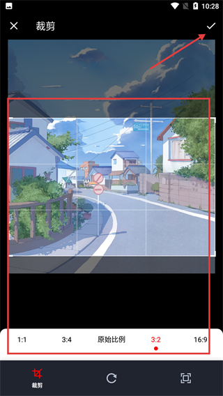 3、進入【裁剪】頁面后,可選擇【1:1】【3:4】等比例,調(diào)整好后點擊右上角對勾,完成圖片裁剪。