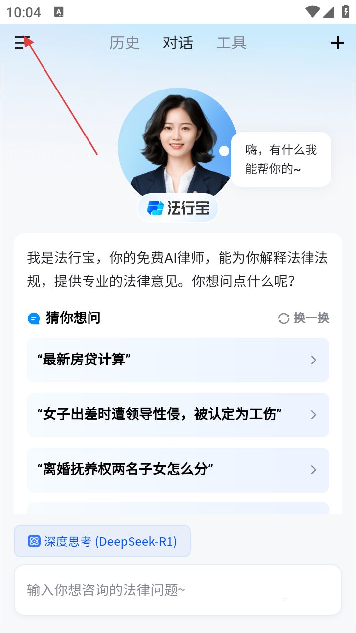1、在咨詢界面,點擊左上角菜單按鈕,展開側(cè)邊欄。
