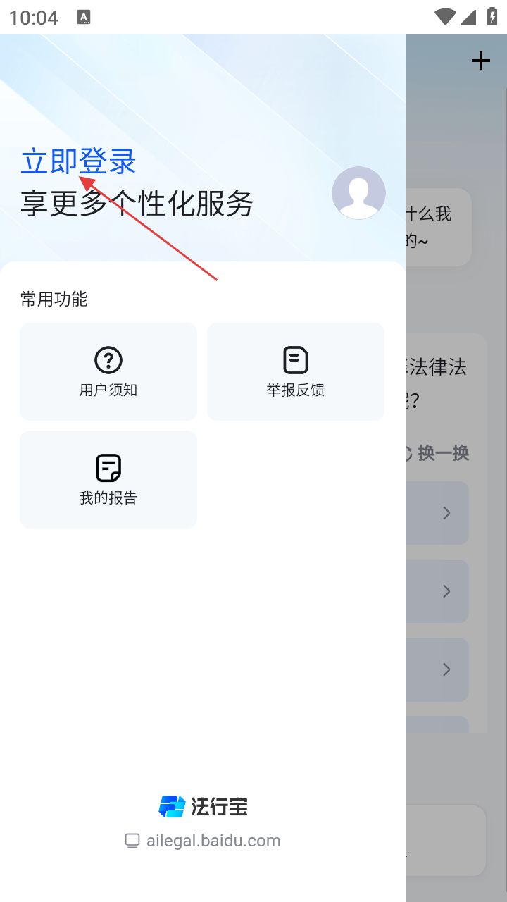 2、展開側(cè)邊欄后,點擊【立即登錄】,進入登錄頁面。