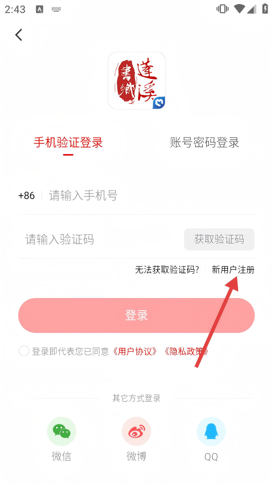 3、在登錄注冊界面,選擇【新用戶注冊】,進(jìn)入注冊流程。