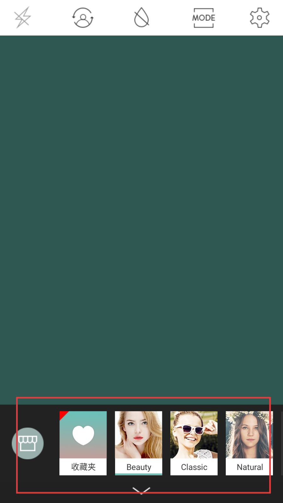 4、在拍攝頁面,點擊底部功能區(qū)的相關(guān)按鈕,可展開【收藏夾】【Beauty】【Classic】濾鏡等效果選項,選擇后可美化拍攝內(nèi)容。