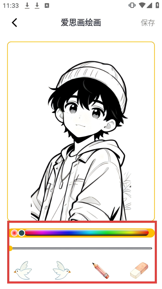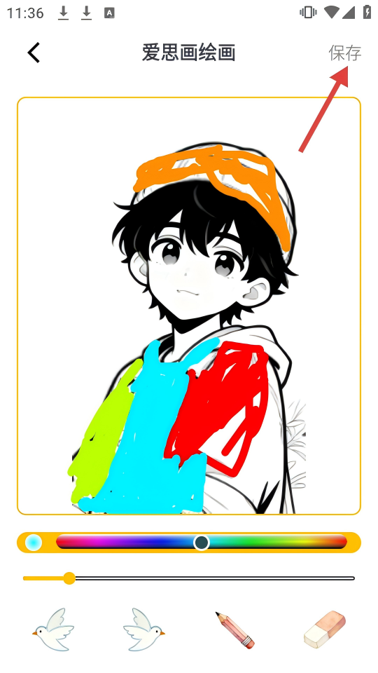 3、填色完成后,點(diǎn)擊界面右上角的【保存】按鈕,將繪制好的作品保存下來。