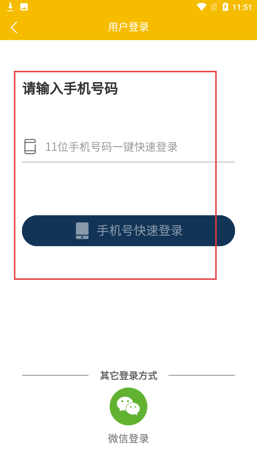 4、在手機號登錄界面,輸入手機號碼,可進行【11位手機號碼一鍵快速登錄】,快速完成登錄操作。