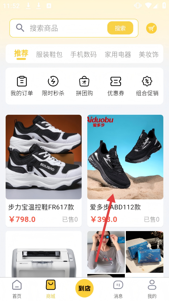 2、在商城頁(yè)面,能通過(guò)搜索框找商品,也可瀏覽推薦的【步力寶溫控鞋F(xiàn)R617款】【愛(ài)多步ABD112款】等商品。