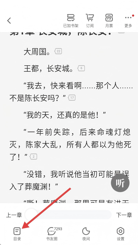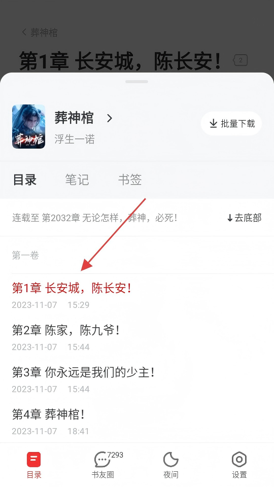 3、在閱讀【葬神棺】時,點(diǎn)擊左下角【目錄】可查看章節(jié)列表。