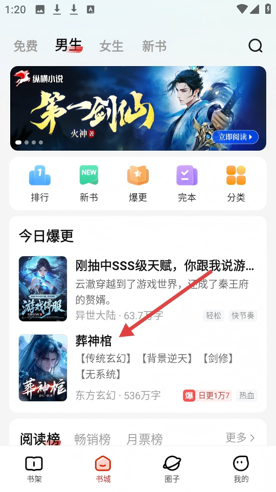 1、在書城找到【葬神棺】條目,點(diǎn)擊可進(jìn)入作品詳情頁。