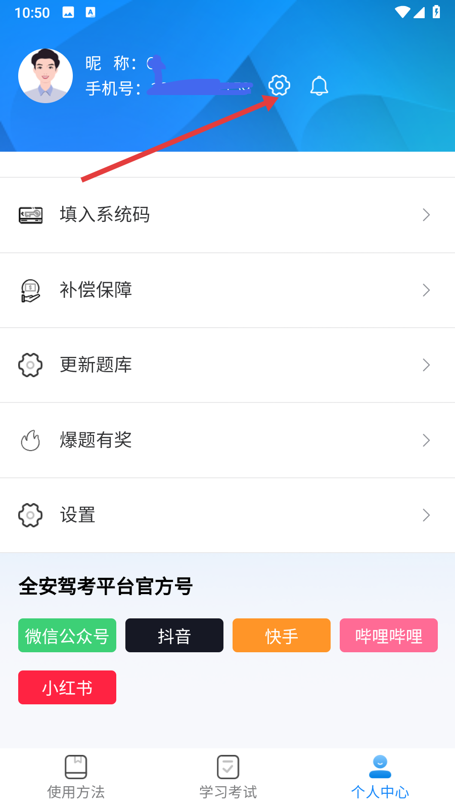 2、在個人中心頁面,點擊右上角【設(shè)置】圖標,進入設(shè)置界面。