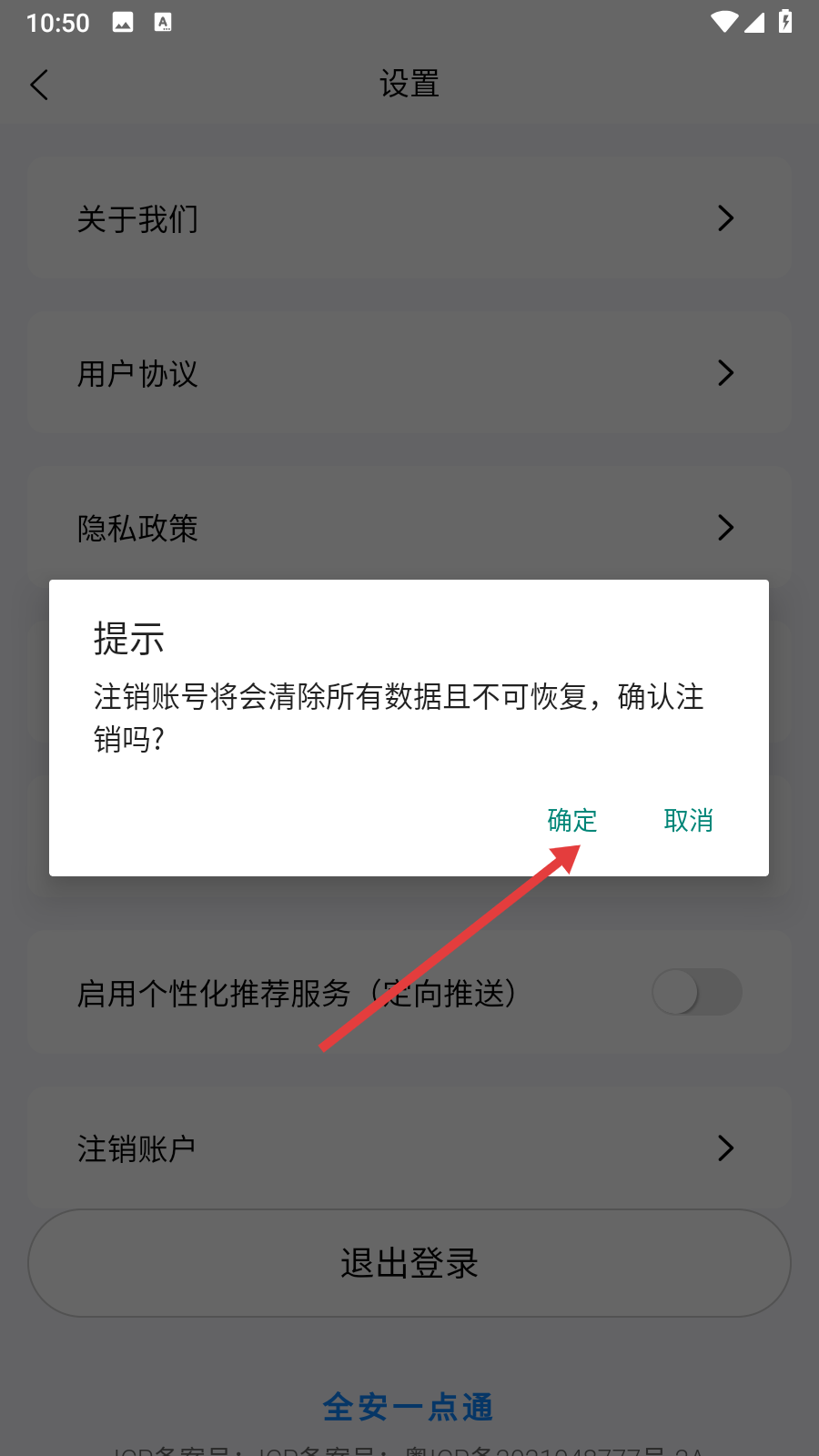 4、在注銷提示框中,點擊【確定】按鈕,完成賬號注銷操作。