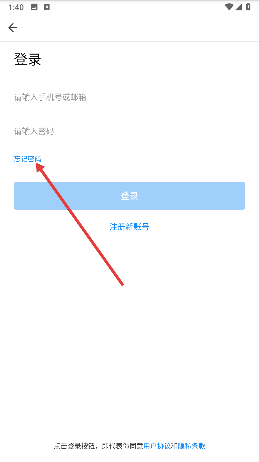 1、在登錄頁面,點擊【忘記密碼】選項,進入密碼找回流程。