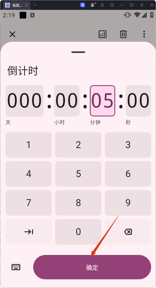 3、點擊【倒計時】選項,進入時間設(shè)置界面,設(shè)置所需的倒計時時間。