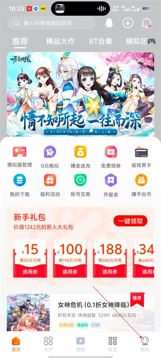 1、在游戲平臺(tái)首頁(yè),點(diǎn)擊右下角【我的】,進(jìn)入個(gè)人界面。