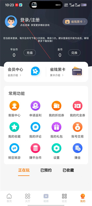 1、在游戲平臺(tái)首頁,點(diǎn)擊右下角【我的】,進(jìn)入個(gè)人界面。
