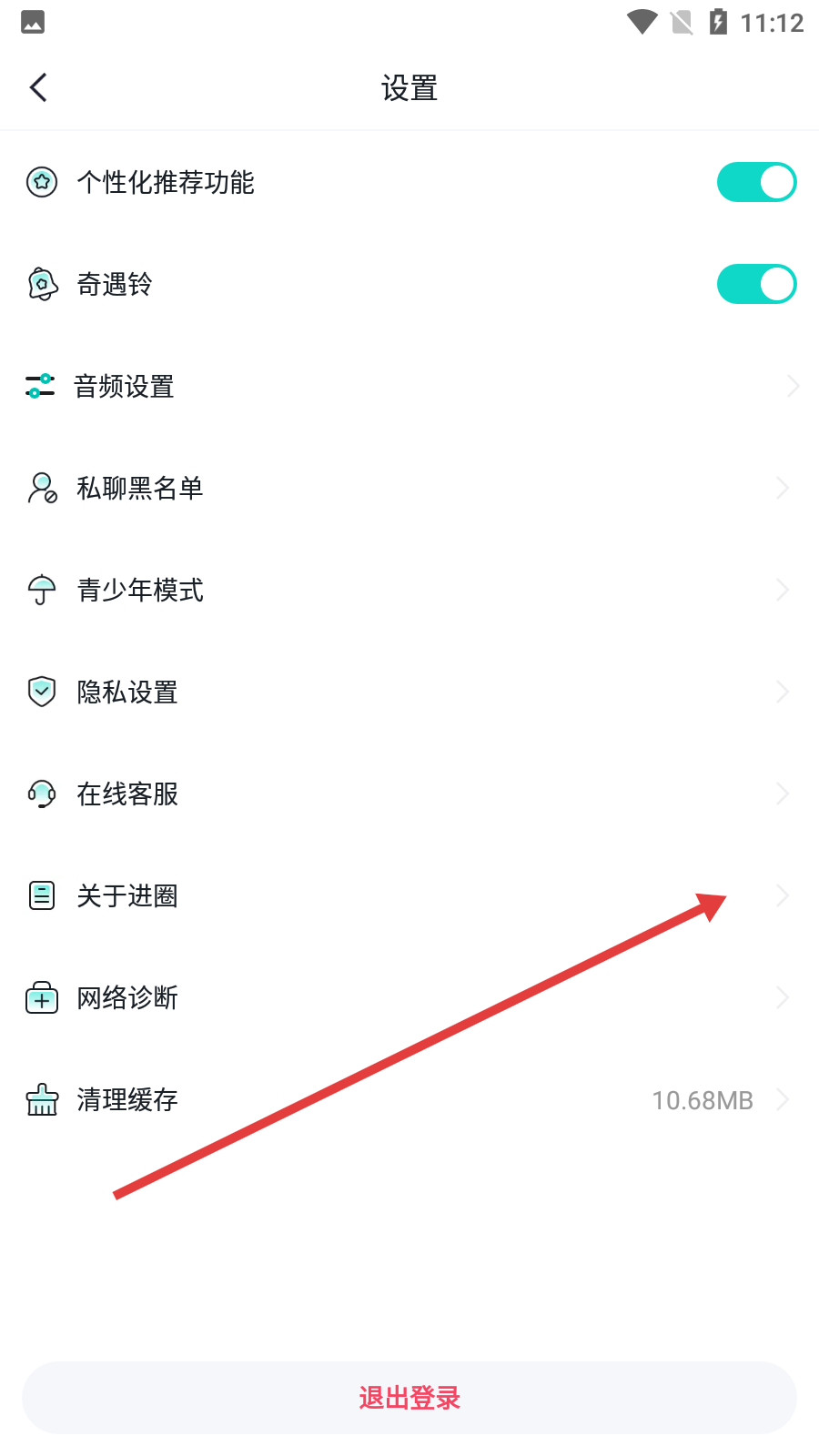 2、進入【設(shè)置】后,找到【關(guān)于進圈】并點擊。