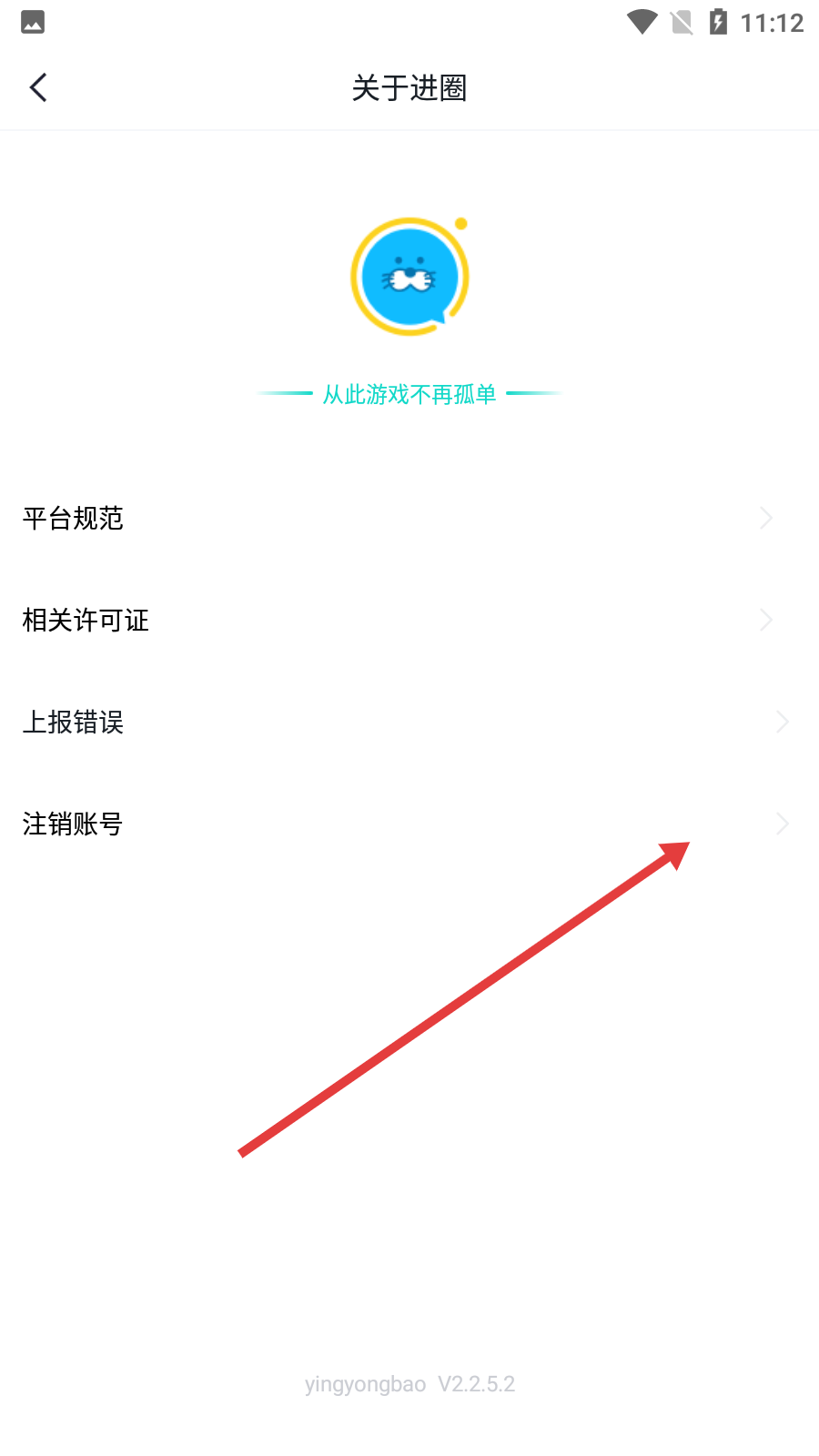 3、在【關(guān)于進圈】頁面,點擊【注銷賬號】。