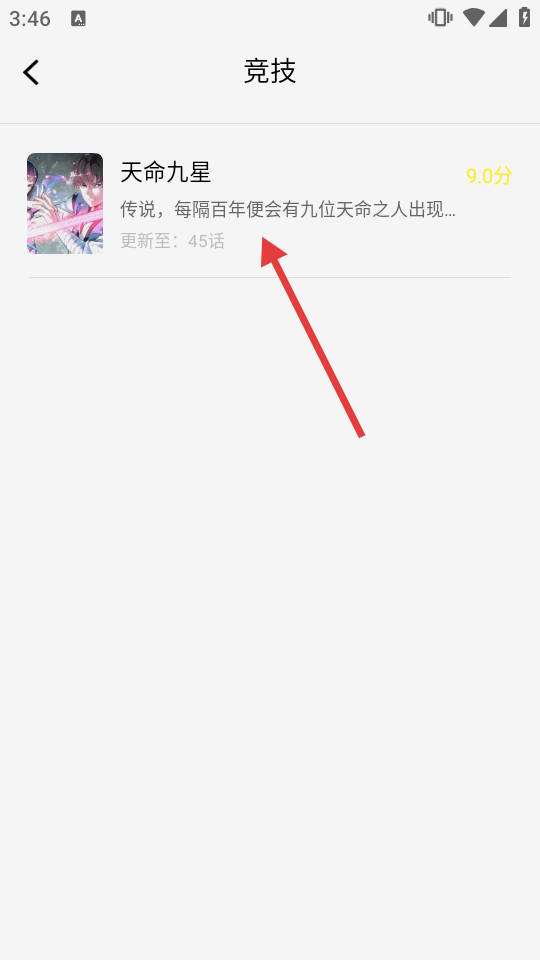 3、在競(jìng)技漫畫列表頁面選擇《天命九星》,進(jìn)入漫畫詳情頁面。