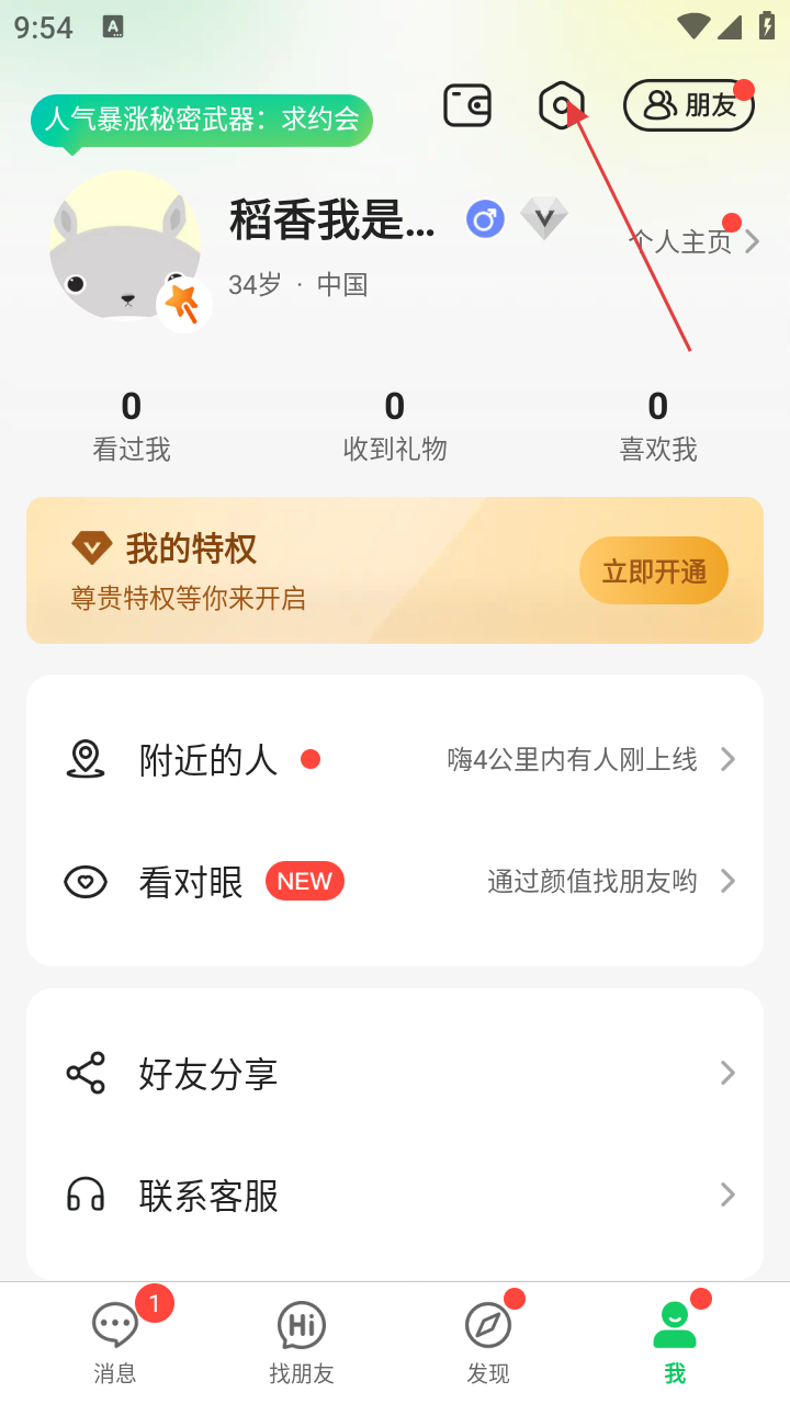 2、在個(gè)人頁(yè)面,點(diǎn)擊右上角設(shè)置圖標(biāo),可進(jìn)入設(shè)置界面,進(jìn)行各項(xiàng)功能設(shè)置。