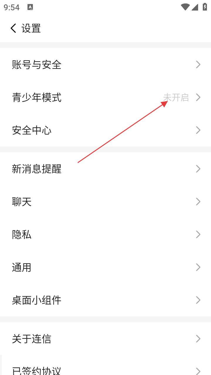 3、在設(shè)置界面,找到【青少年模式】選項(xiàng),點(diǎn)擊進(jìn)入可查看該模式的開(kāi)啟狀態(tài)及相關(guān)設(shè)置。