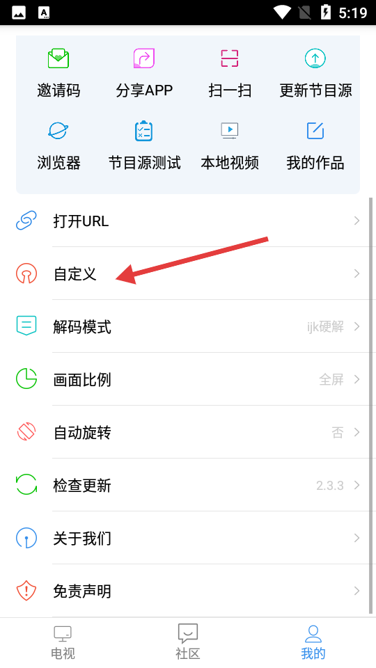 2、在個(gè)人頁(yè)面點(diǎn)擊【自定義】,進(jìn)入自定義說(shuō)明頁(yè)面。