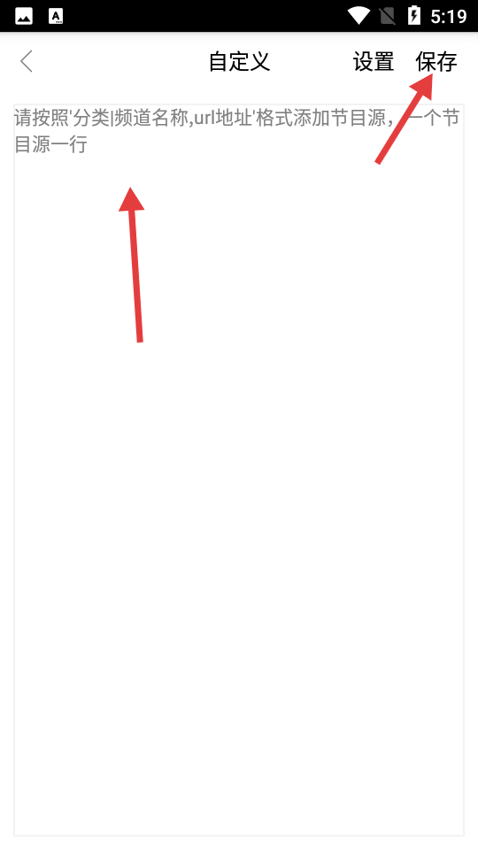 4、在自定義節(jié)目源添加頁(yè)面按照要求添加節(jié)目源后,點(diǎn)擊右上角【保存】,完成自定義頻道創(chuàng)建操作。