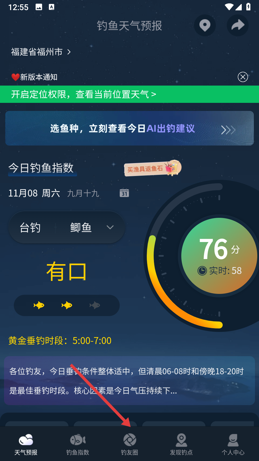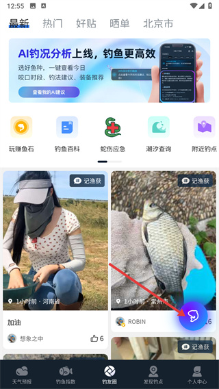 1、在APP首頁(yè)點(diǎn)擊【釣友圈】,進(jìn)入釣友圈頁(yè)面。