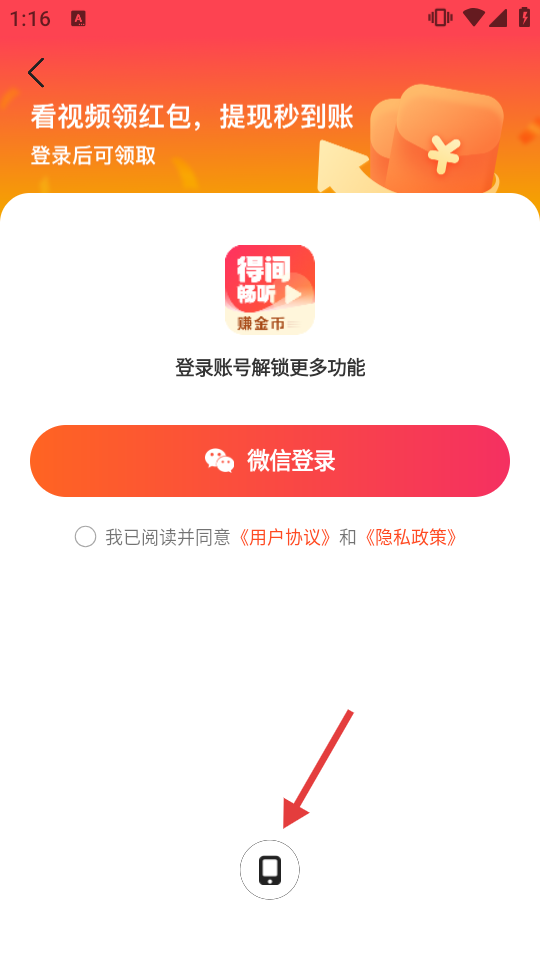 2、在登錄頁(yè)面點(diǎn)擊手機(jī)號(hào)登錄圖標(biāo),進(jìn)入手機(jī)號(hào)登錄頁(yè)面。