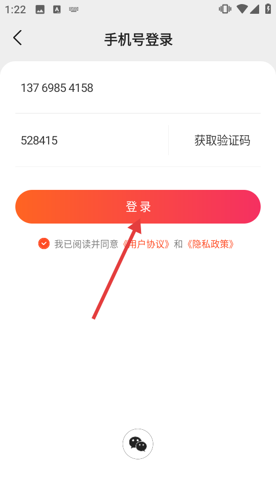 4、勾選同意《用戶(hù)協(xié)議》和《隱私政策》后,點(diǎn)擊【登錄】,完成手機(jī)號(hào)登錄操作。