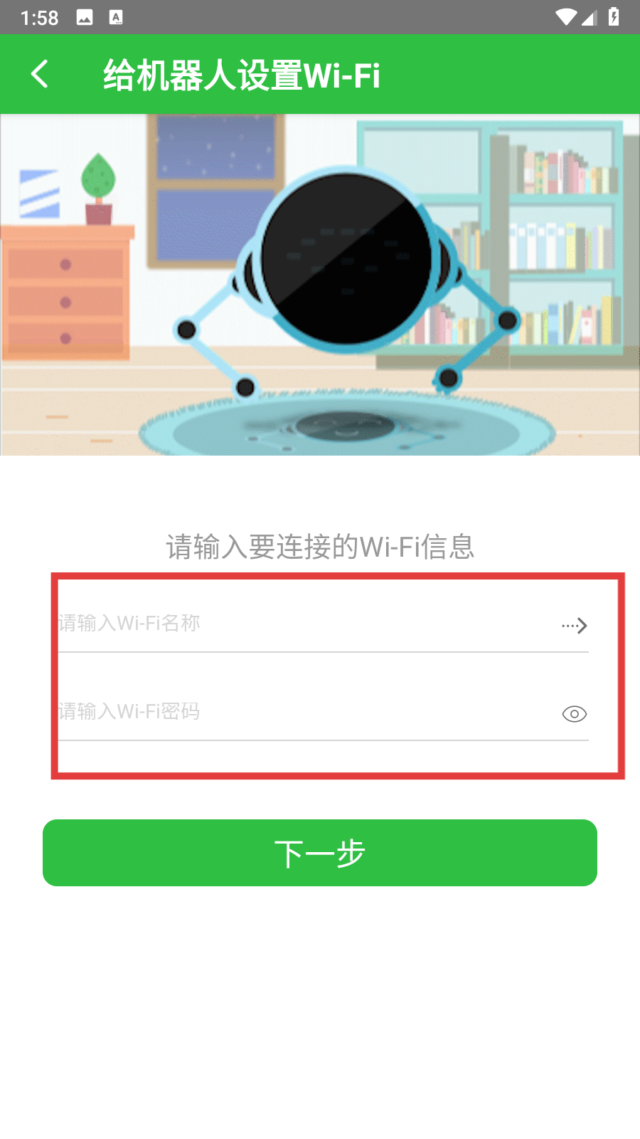 4、輸入WiFi信息后點(diǎn)擊【下一步】,繼續(xù)完成機(jī)器人的WiFi設(shè)置流程。