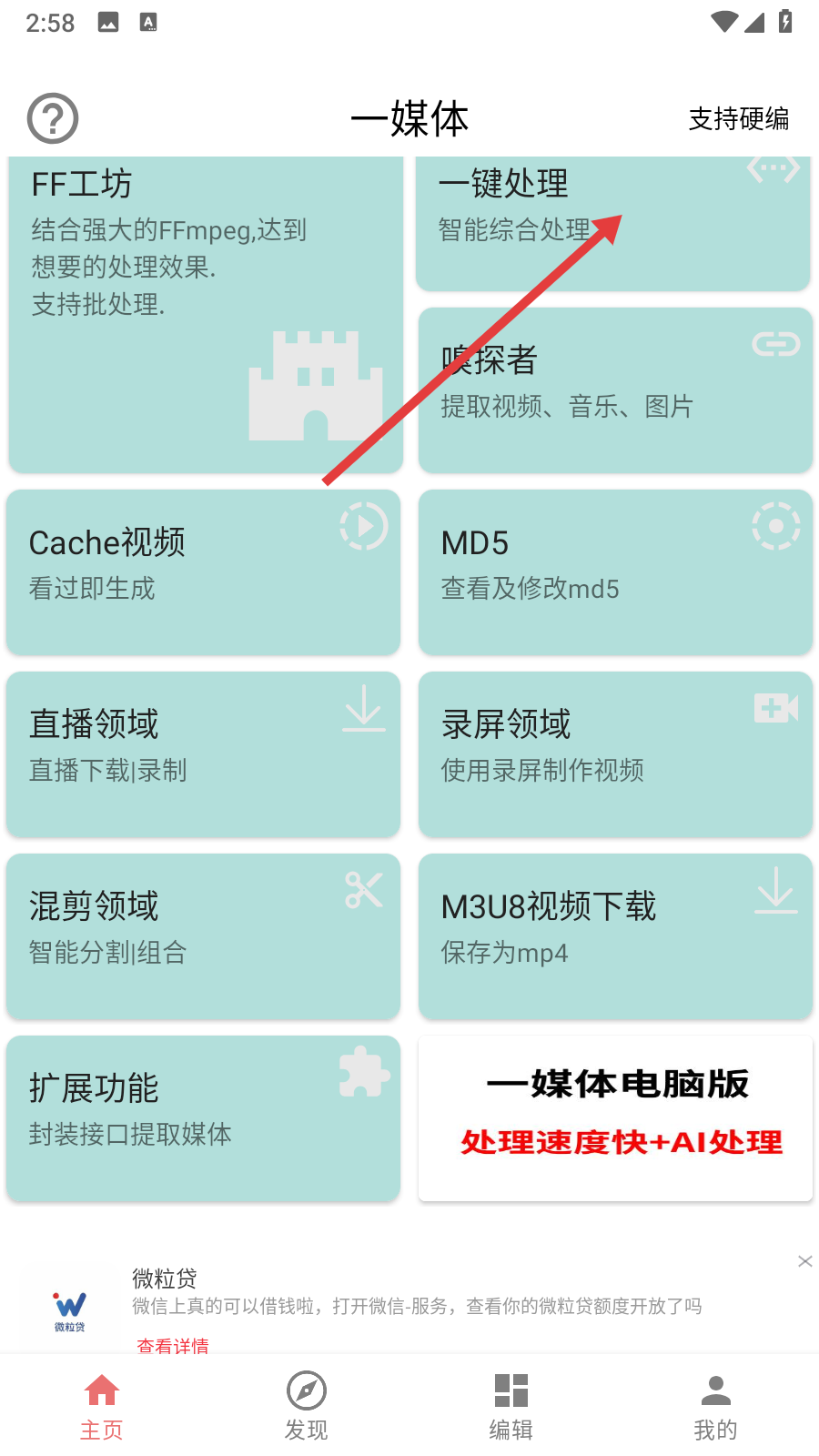 1、在APP首頁(yè)點(diǎn)擊【一鍵處理】,進(jìn)入一鍵處理功能頁(yè)面。