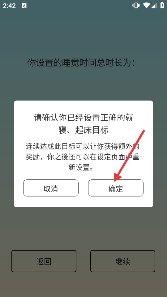 1、確認(rèn)已設(shè)置正確的就寢、起床目標(biāo)后,點(diǎn)擊【確定】,完成目標(biāo)設(shè)置確認(rèn)。