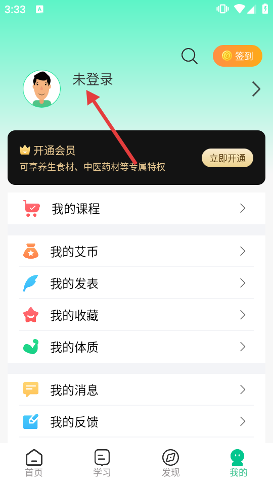 2、在個人頁面點擊【未登錄】,進入登錄頁面。