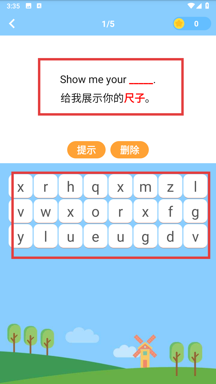 3、在單詞闖關(guān)題目頁面,根據(jù)提示拼寫單詞。
