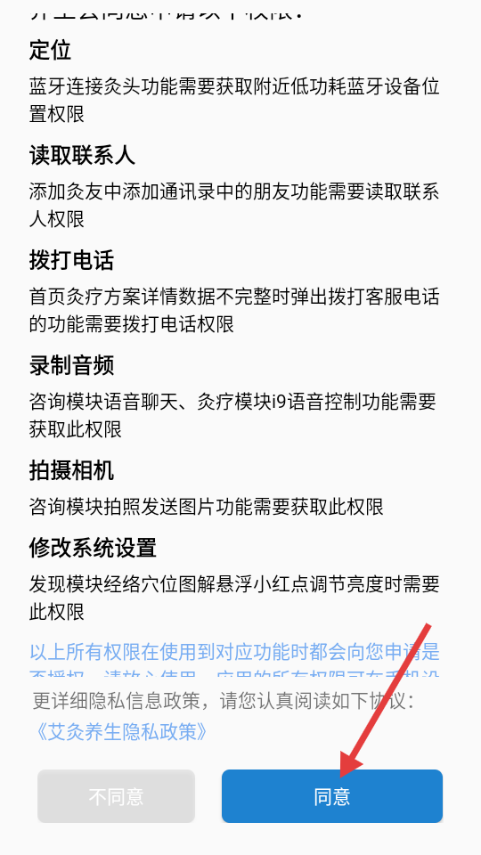 1、點擊【同意】,接受權(quán)限與隱私政策,進入登錄頁面。