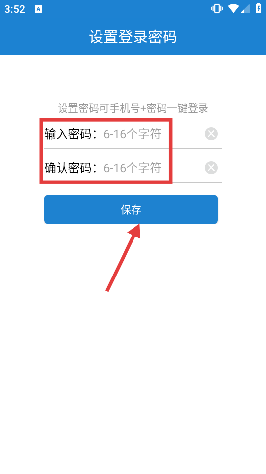 4、在設(shè)置登錄密碼頁面,輸入密碼并確認密碼(6-16個字符),點擊【保存】,完成登錄密碼設(shè)置。
