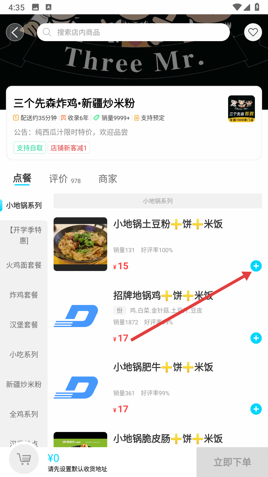 3、在店鋪點餐頁面,點擊目標菜品右側(cè)的加號,彈出菜品選項窗口。
