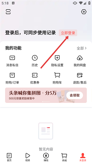 1、在“我的”頁面點擊【立即登錄】,彈出登錄注冊彈窗。