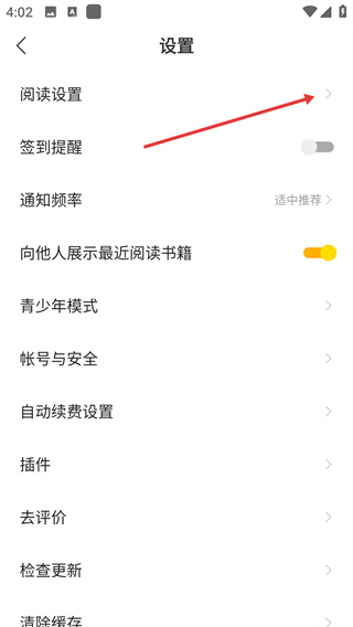 2、在設置頁面找到【閱讀設置】選項并點擊,進入閱讀配置頁面。